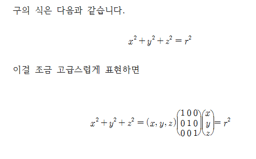 구형성이라는 말은 구의 이차방정식, 수학에서는 quadratic form이라고 하는데 여기에 중간에 있는 행렬이 identity 행렬이기 때문입니다.